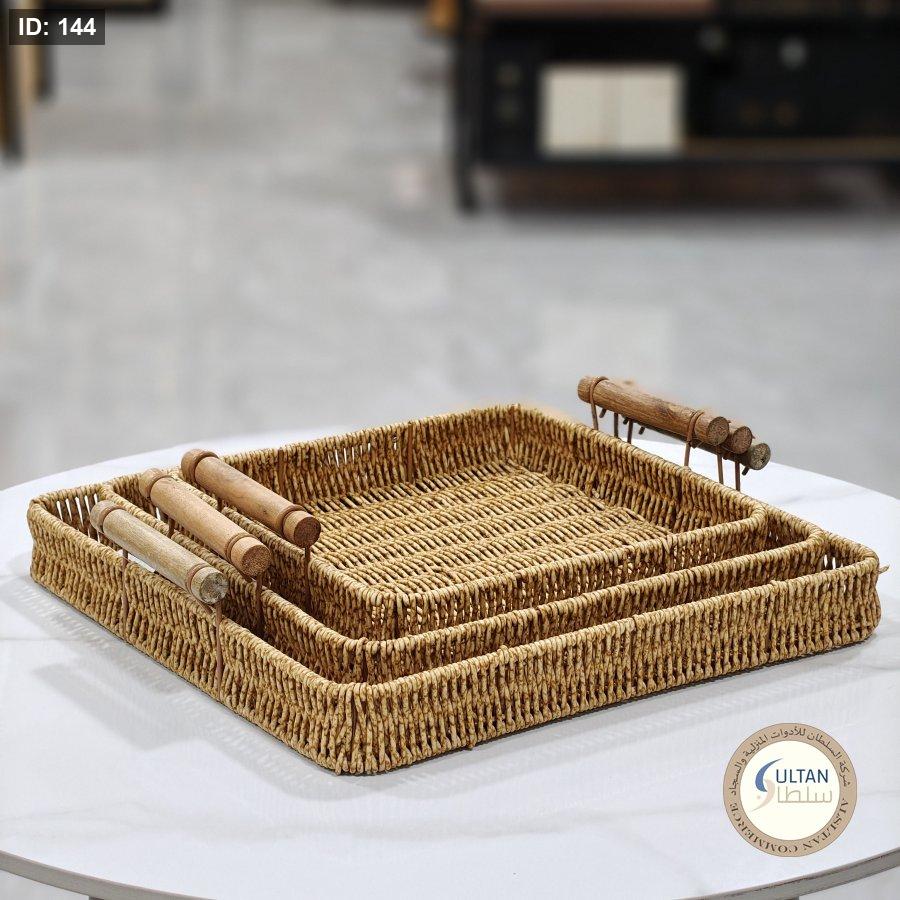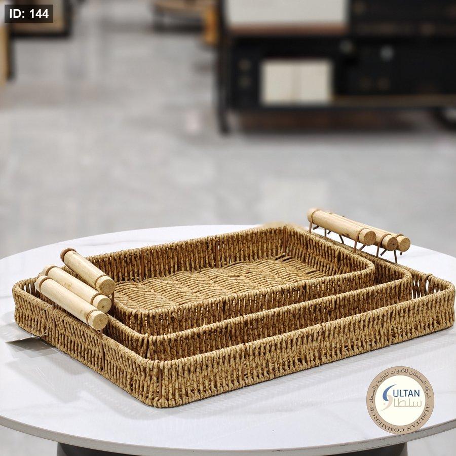 طقم صواني قش 3 أحجام مع مقابض خشبية
