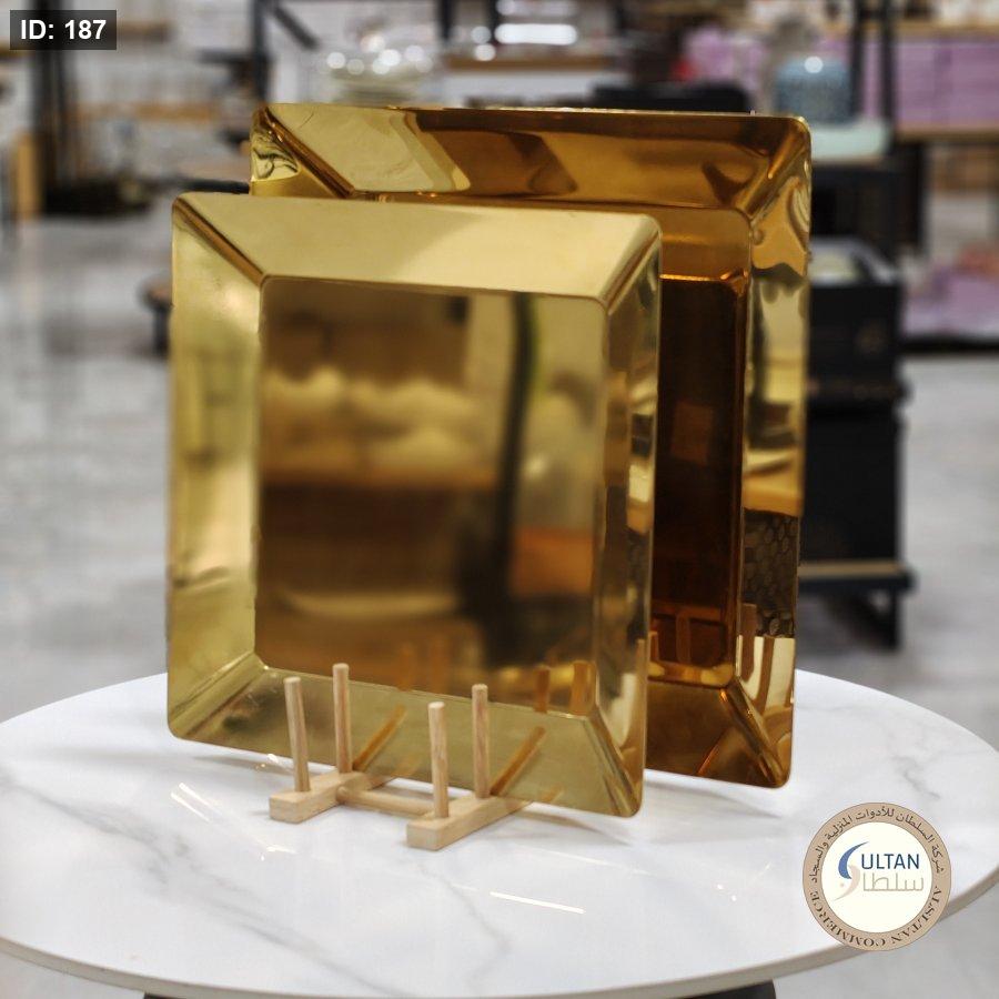 صحن تقديم ستانلس ستيل مربع ذهبي