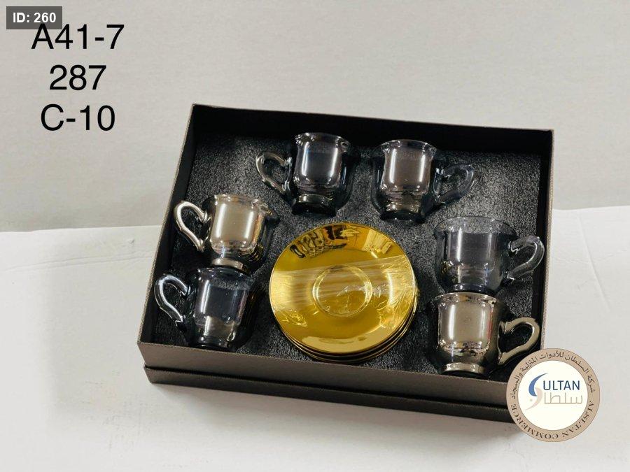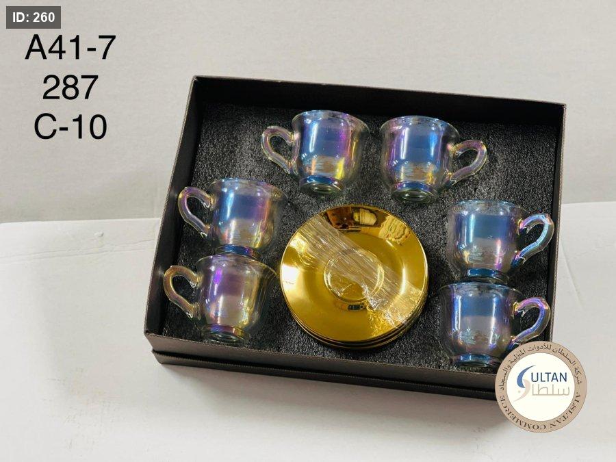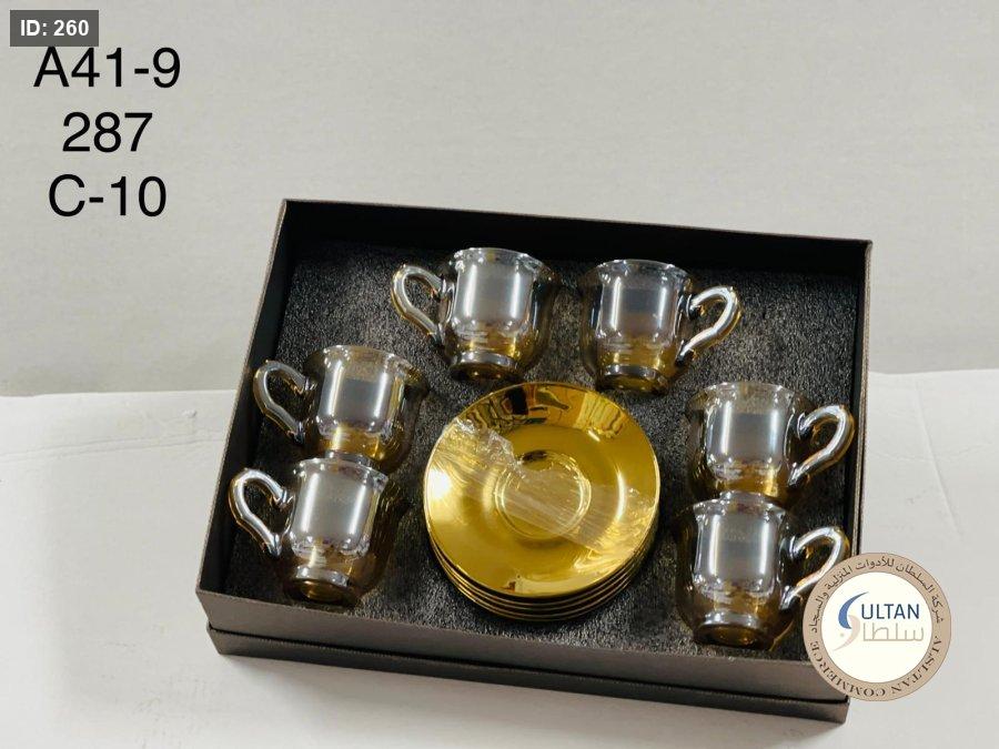 6 فناجين + 6 صحون زجاج ذهبي