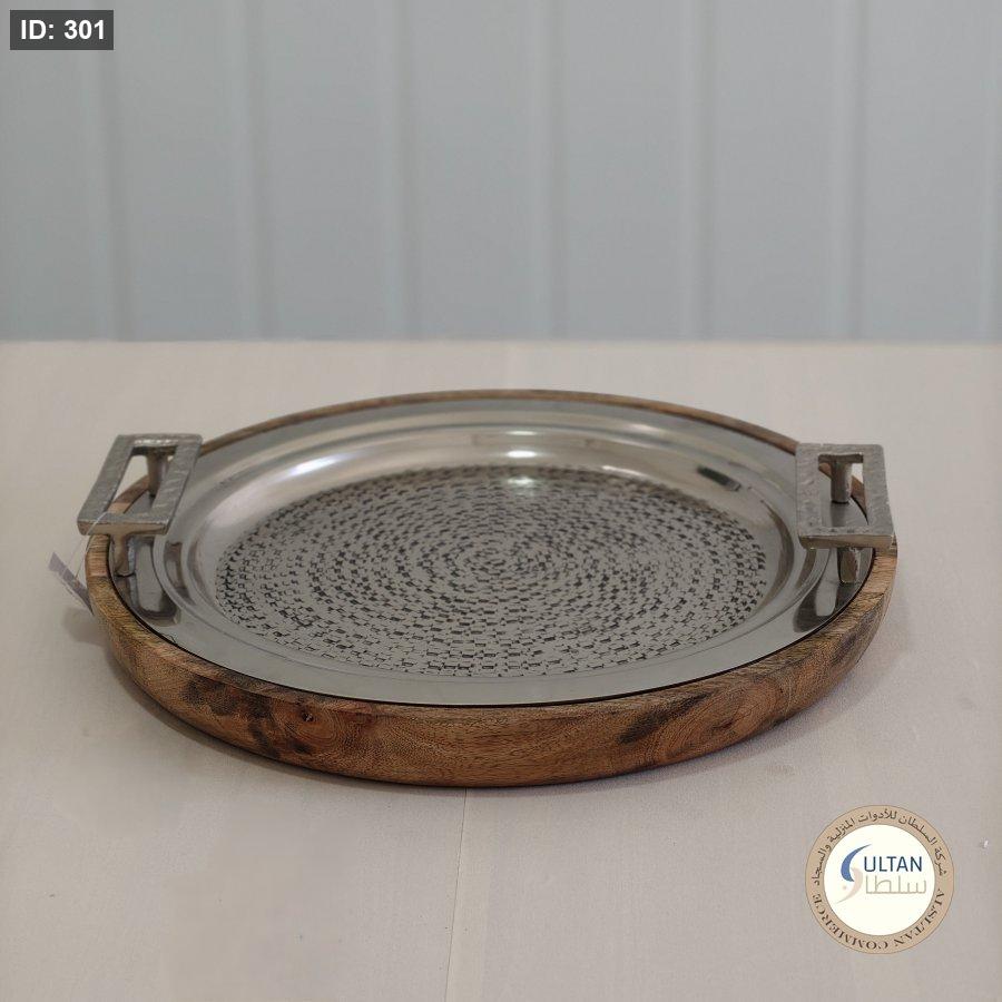 صينية تقديم دائرية خشب مانجو ثقيلة