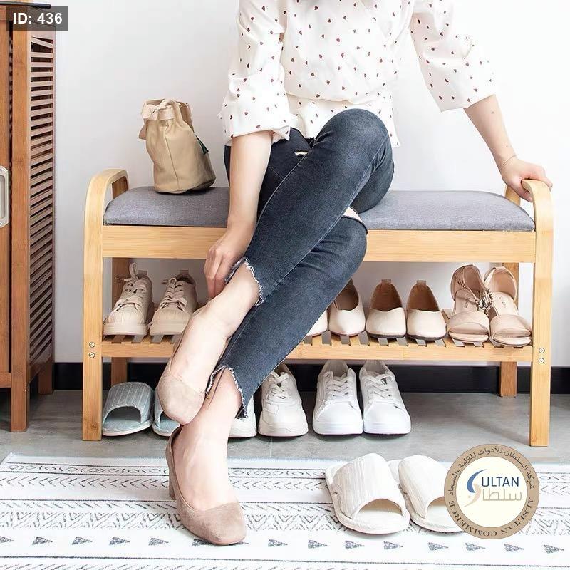 مقعد خشب بامبو مع رف احذية