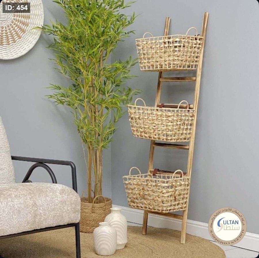 سلم خشب مع سلال قش