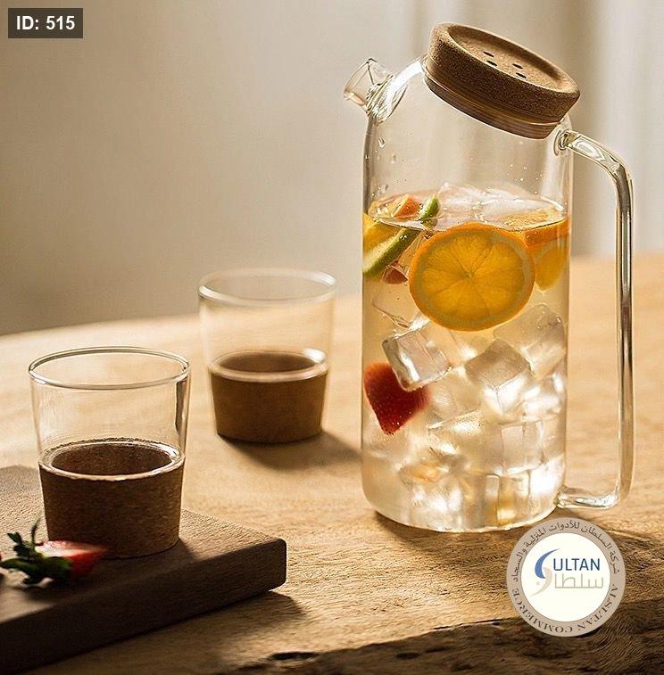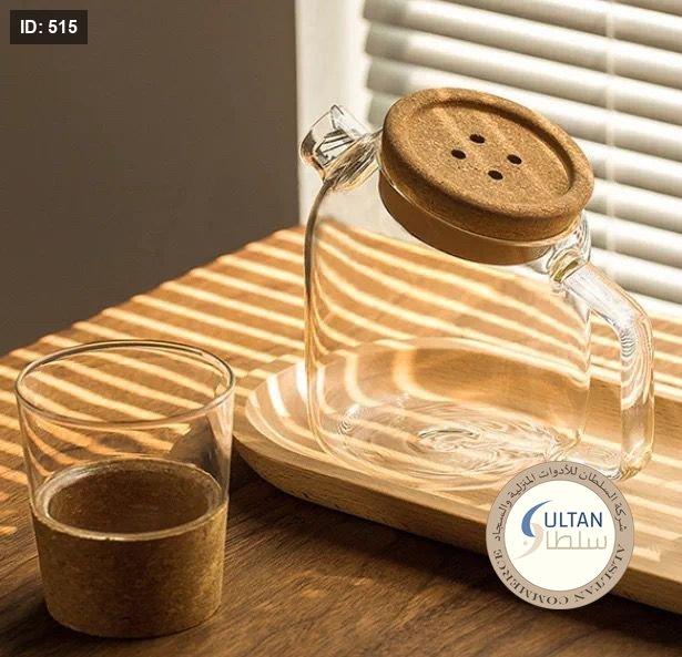 ابريق ماء زجاج غطا خشب