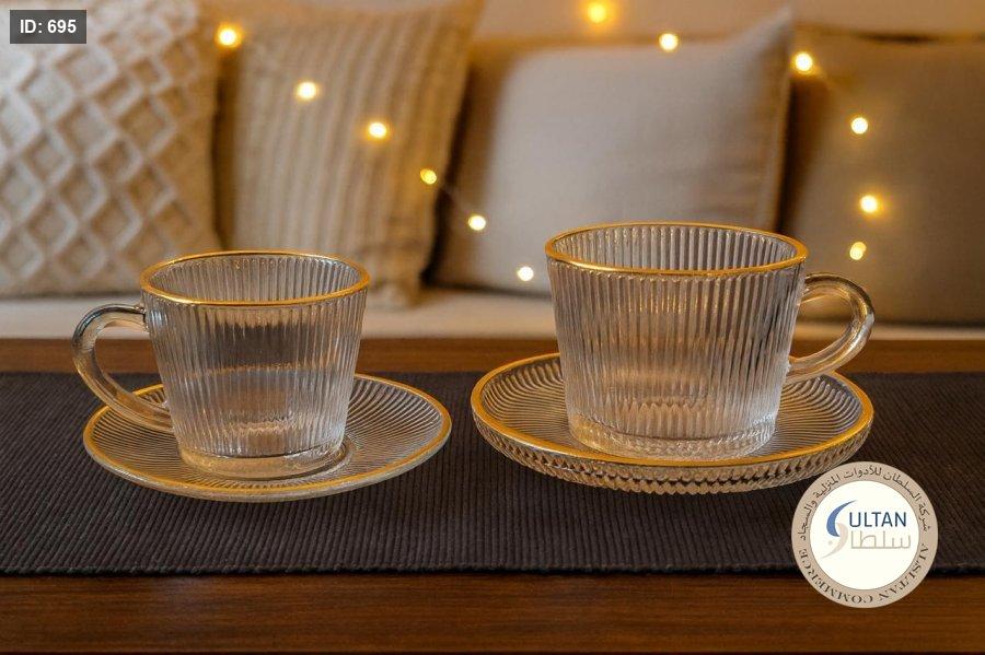 طقم كاسات أو فناجين قزاز مع حز ذهبي