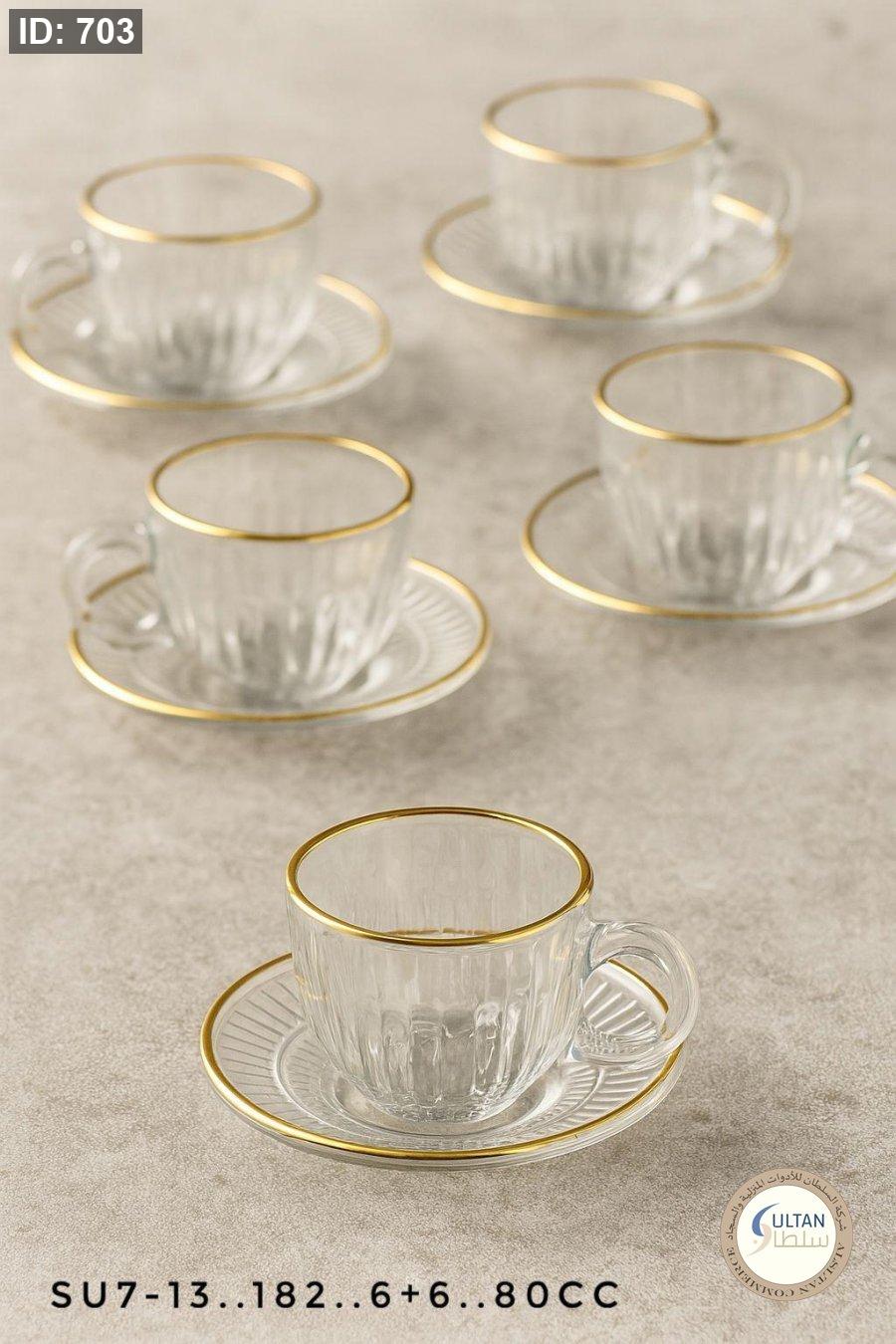 طقم فناجين قهوة قزاز مع حز ذهبي
