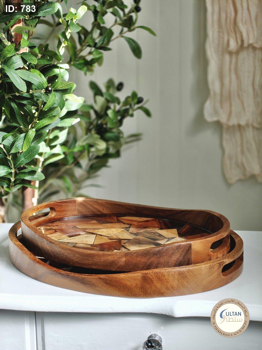 طقم صواني خشب مكسر مع ريزن