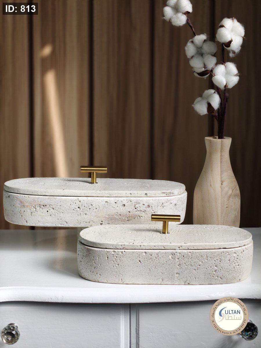 مضيفة حجر ثقيل بيضاوي مع غطا