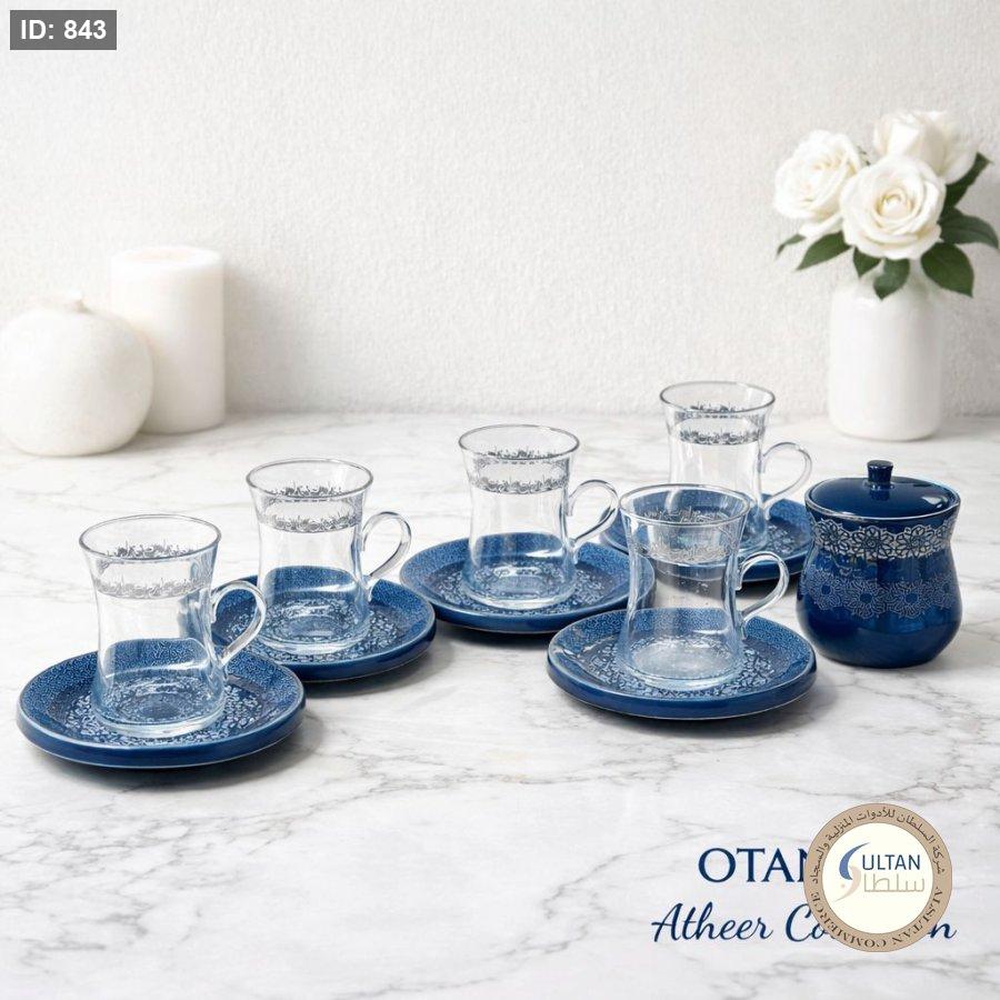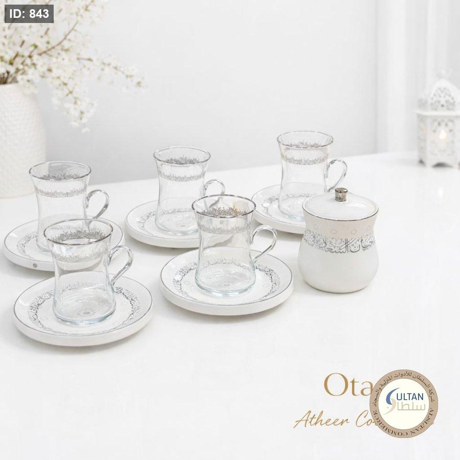 الطقم مكون من 6 استكانات شاي+ 6 صحون + سكرية