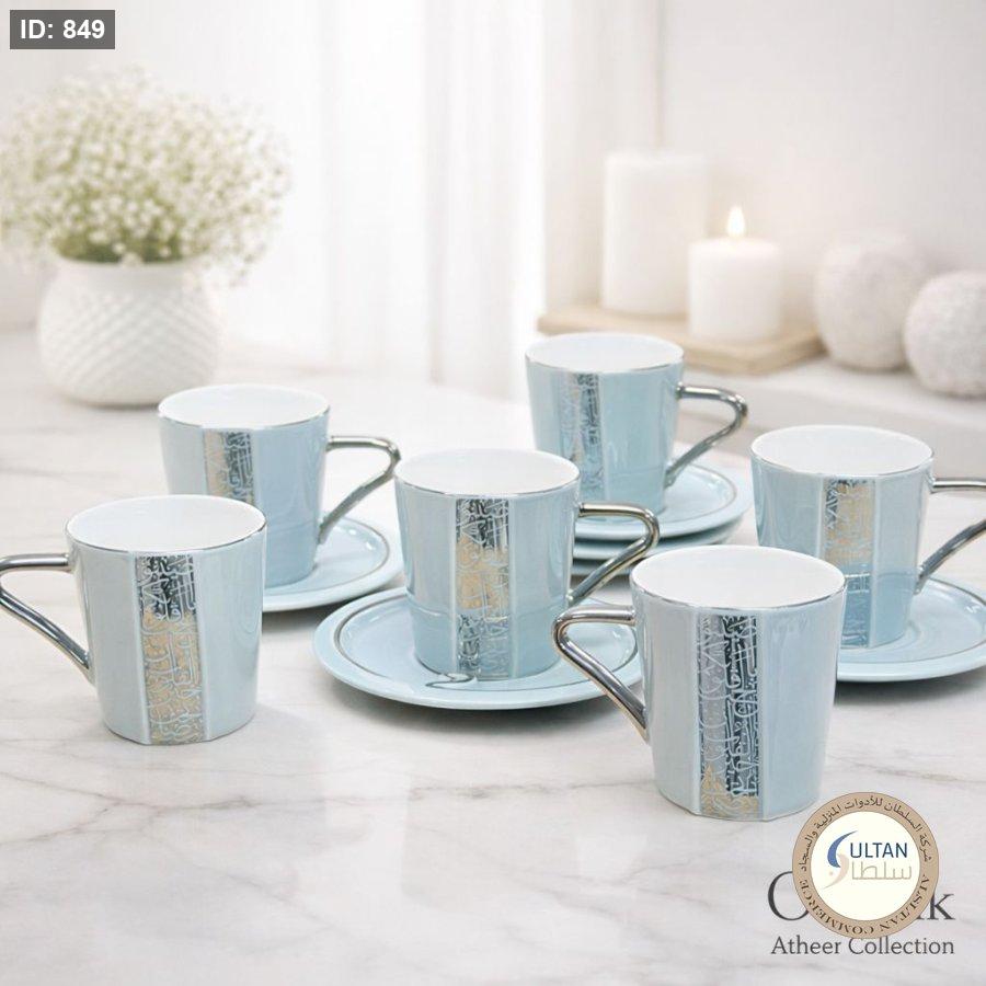 الطقم مكون من 6 فناجين شاي + 6 صحون