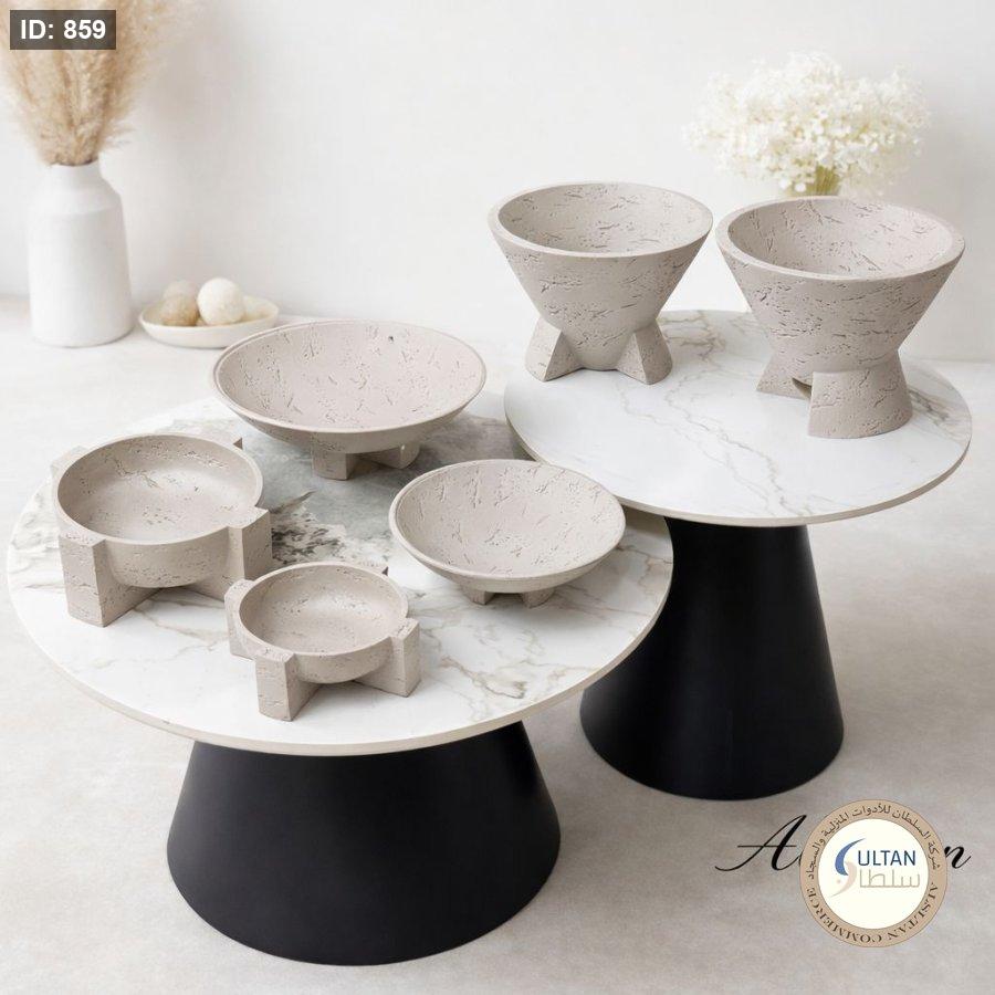 الطقم مكون من 6 جاطات حجر بأحجام مختلفة + طقم 2 طاولة رخام