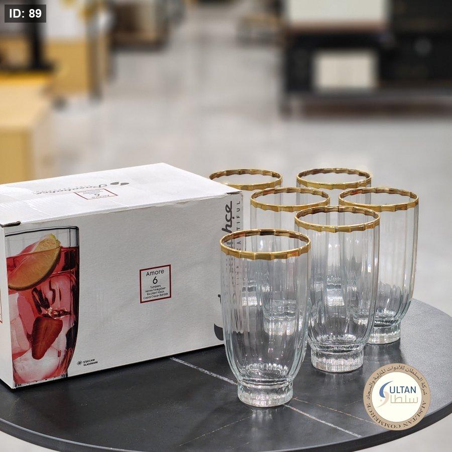 طقم 6 كاسات مي حجم كبير زجاج شفاف مع حز ذهبي