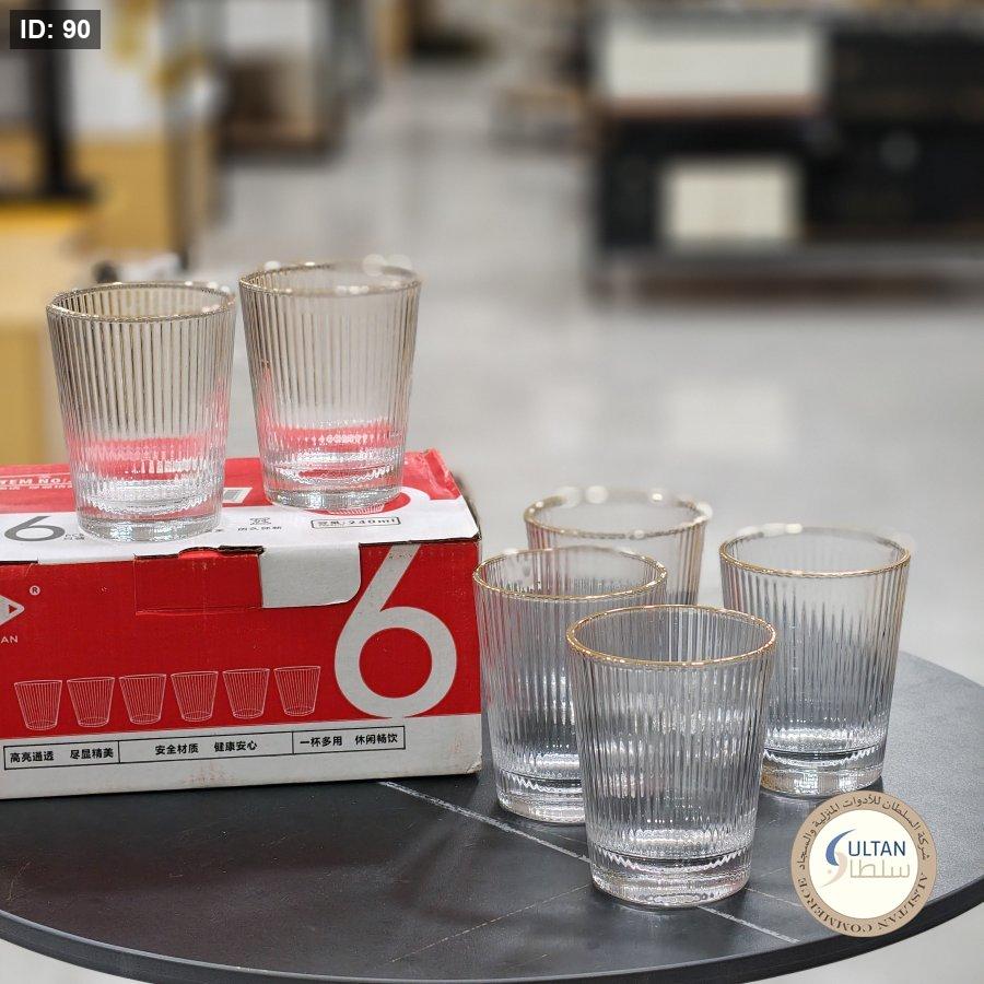 طقم 6 كاسات عصير زجاج شفاف مع حز ذهبي