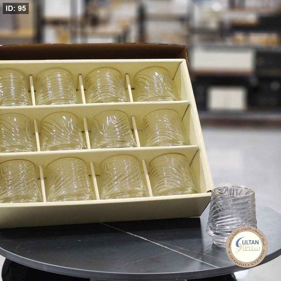 طقم 12 كاسة عصير زجاج شفاف مع حز ذهبي