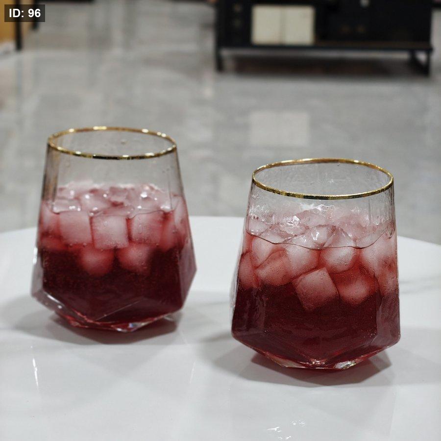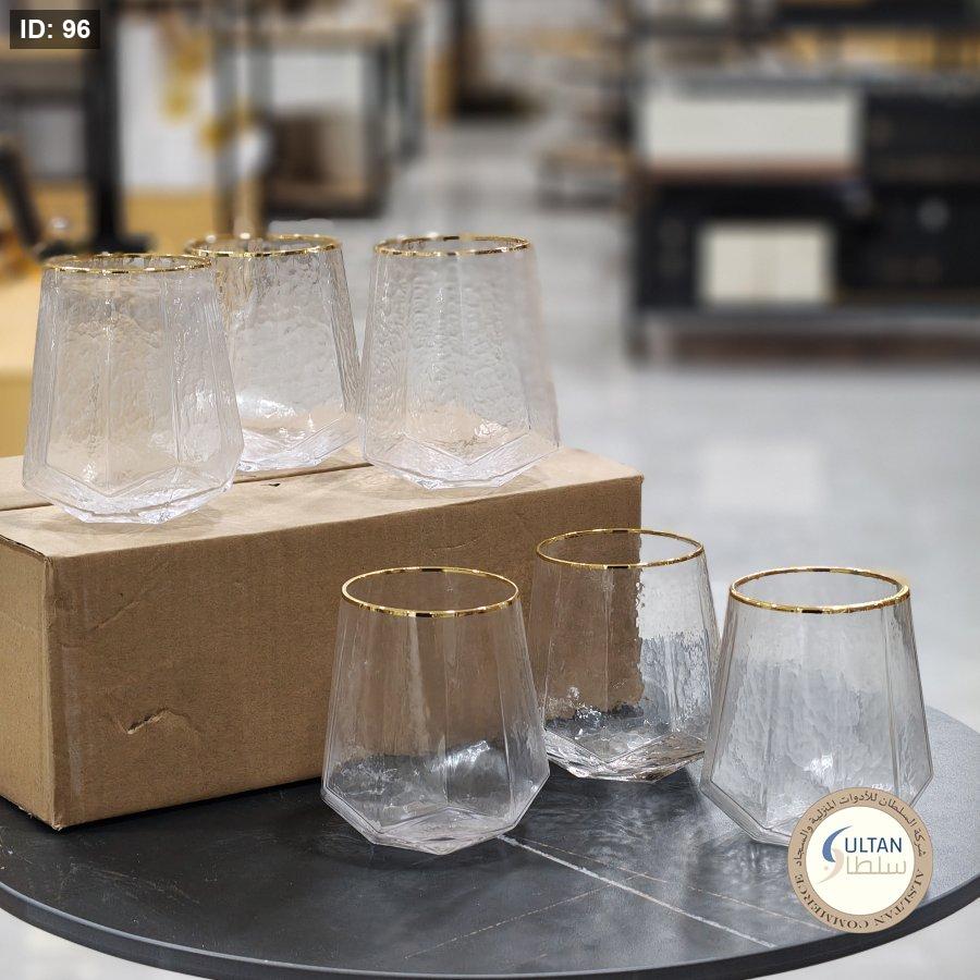 طقم 6 كاسات عصير زجاج شفاف مع حز ذهبي