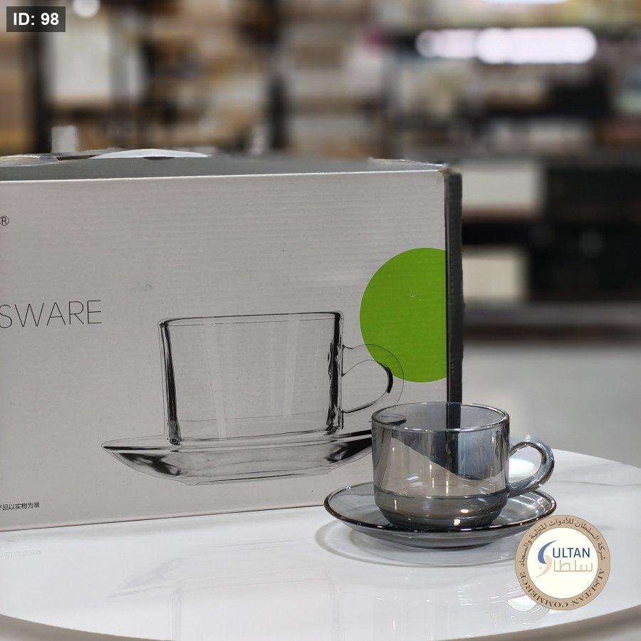 طقم 6 كاسات شاي+ 6 صحون لون أسود